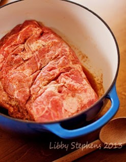 Starting off with a pork butt, marinated overnight in a vinegar and spice recipe.