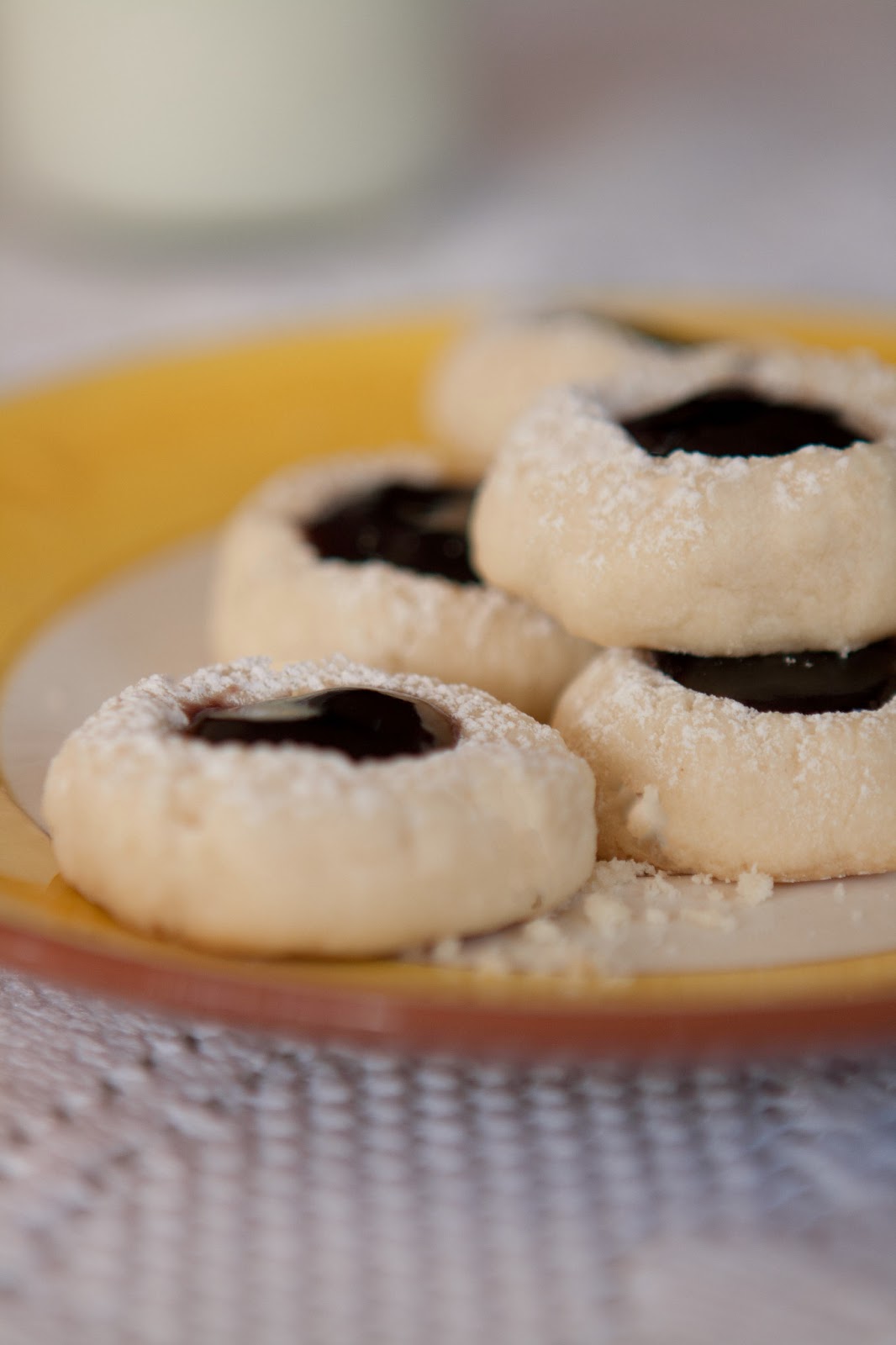 to cool. While cooking: first sift confectioner sugar over each cookie. Add jam to the center