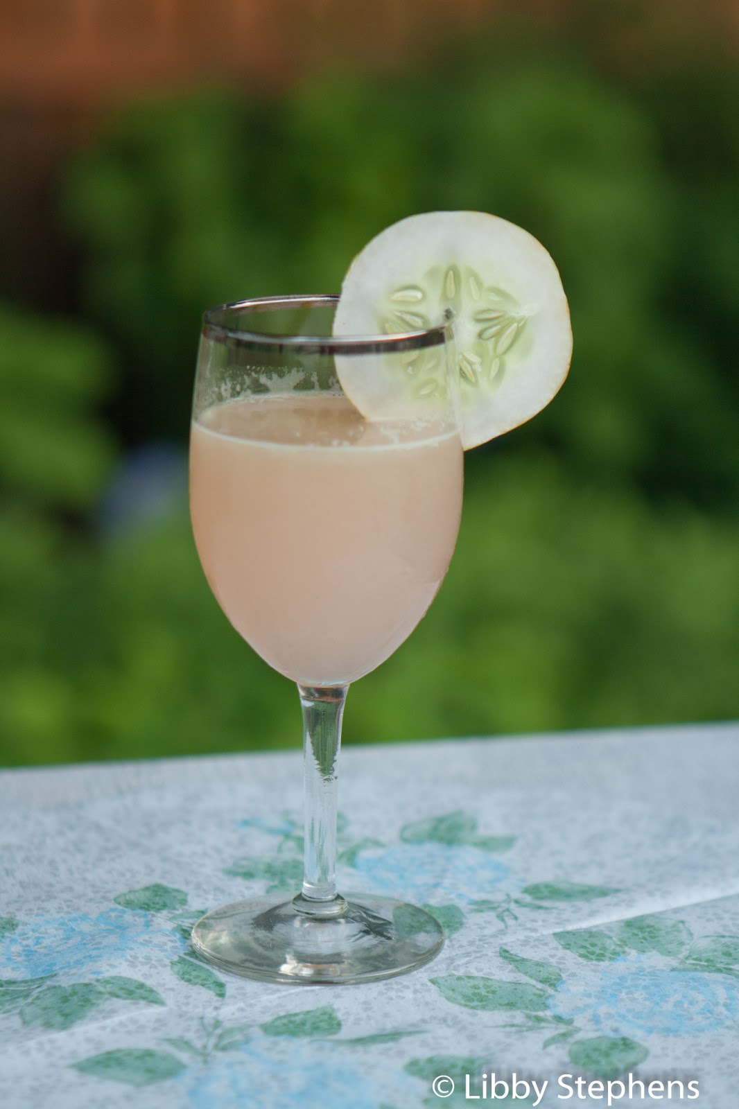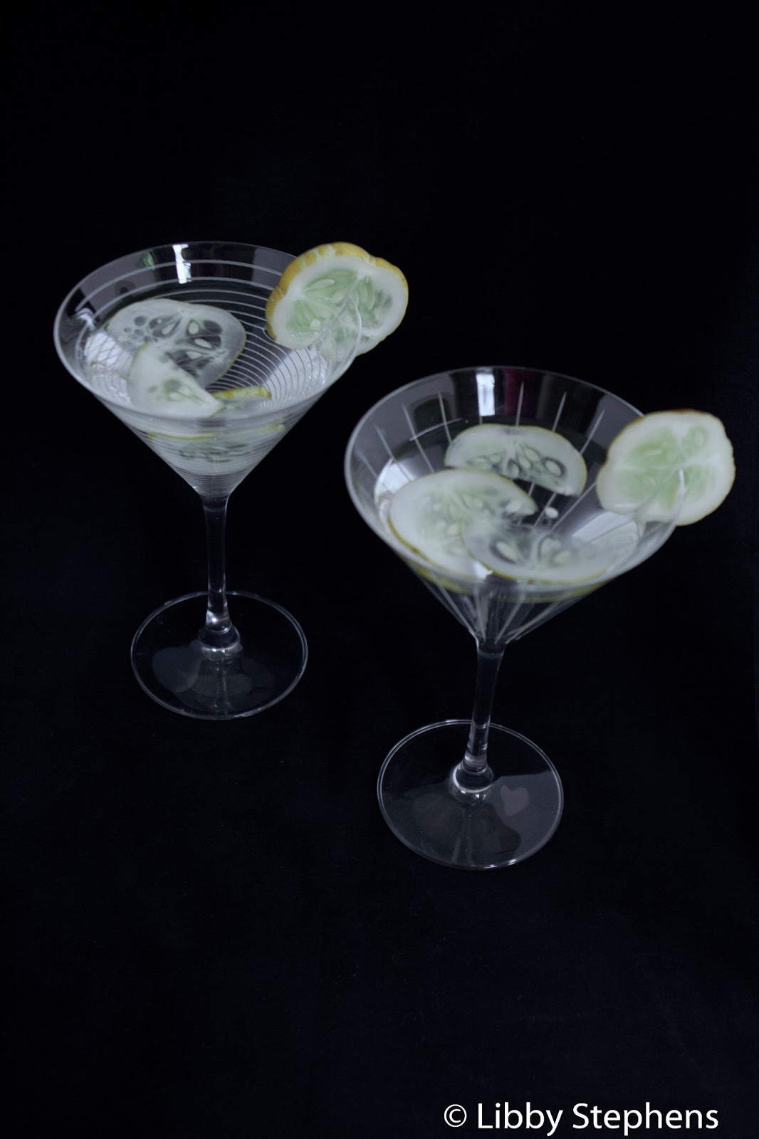 - Strain into a martini glass (or vessel of your choice). Add a slice or two (or three) of fresh, unbruised cucumber and serve immediately.