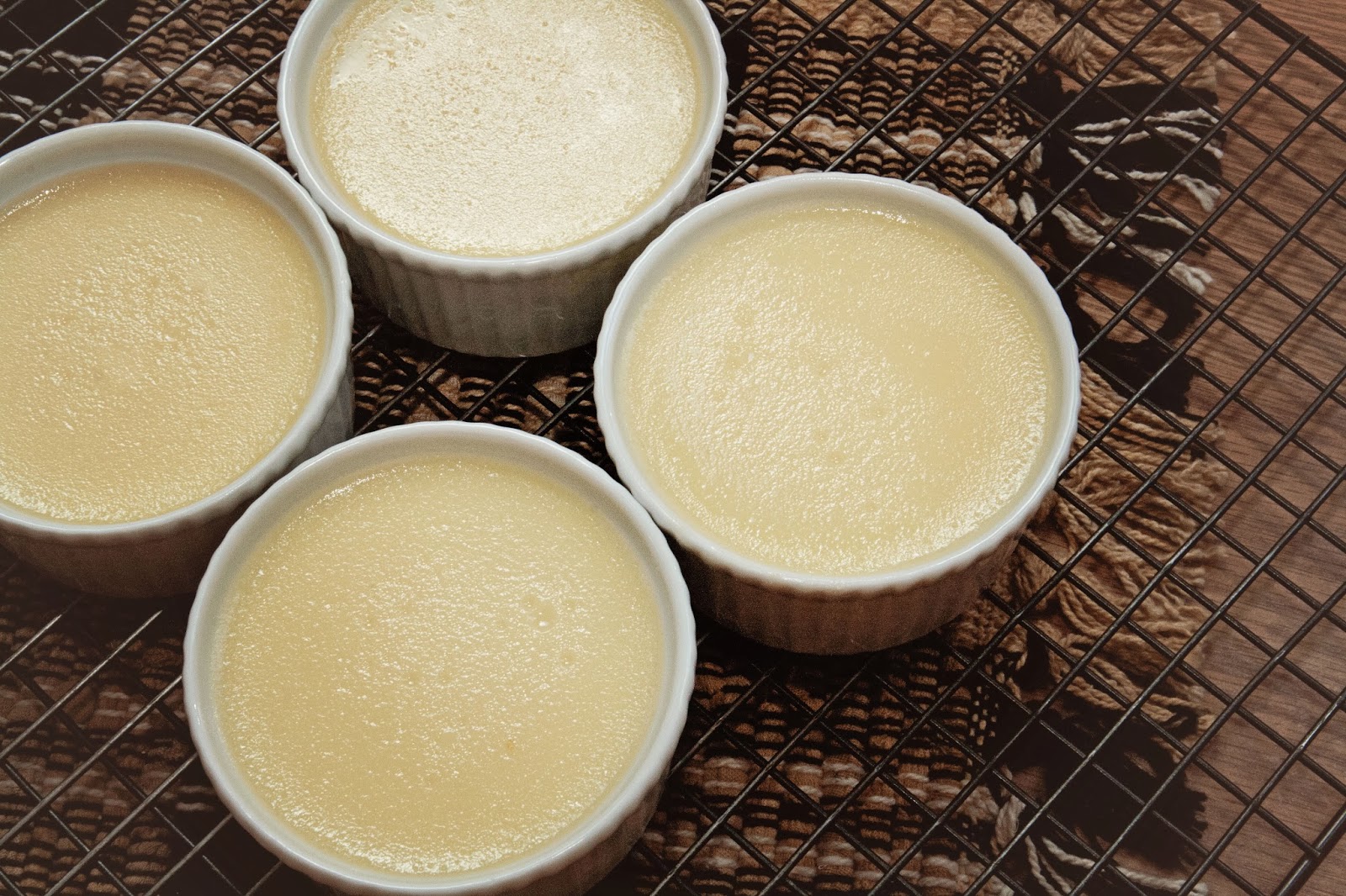 5. Right before serving, sprinkle the remaining sugar in a thin, even coating on the surface of each custard, using 2 teaspoons for each one. Use a preheated broiler or blowtorch to caramelize the sugar. In a broiler it will take 1 to 2 minutes, and it will take about 30 seconds with a blowtorch.