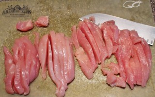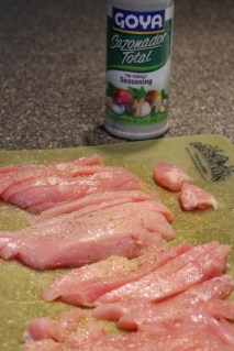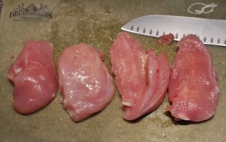 *tip for the day: chicken breasts are easier to slice if partially thawed.