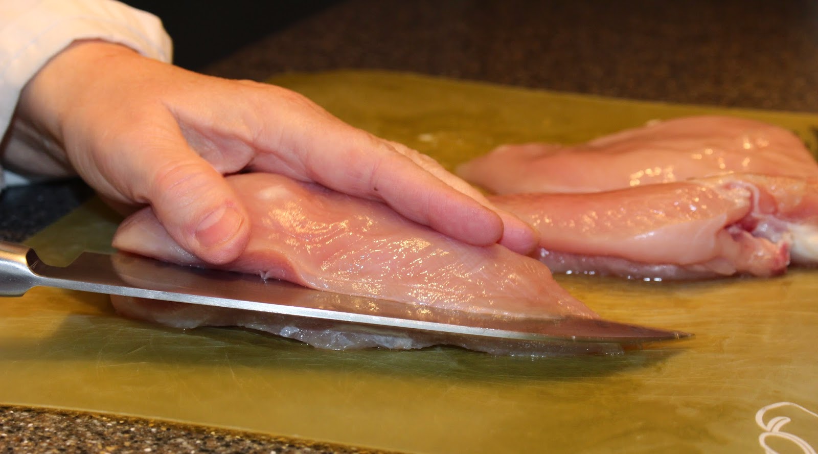 *tip for the day: chicken breasts are easier to slice if partially thawed.