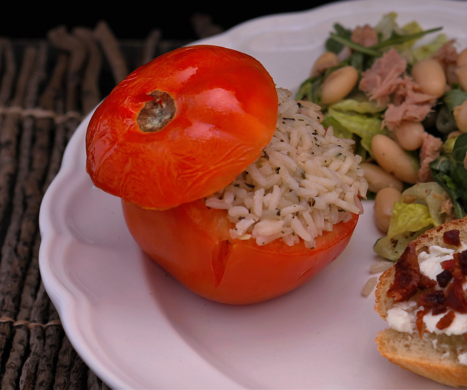 Tomatoes, I love tomatoes, especially if they are fresh from the garden. I planted my garden on Saturday and I can hardly wait for the vines to produce that beautiful fruit. In anticipation for the coming weeks – watching the plants grow I wanted to share a simple recipe where the tomato is the star.
