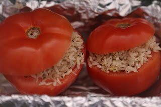 the mixture into the hollowed-out tomatoes (dividing evenly).
