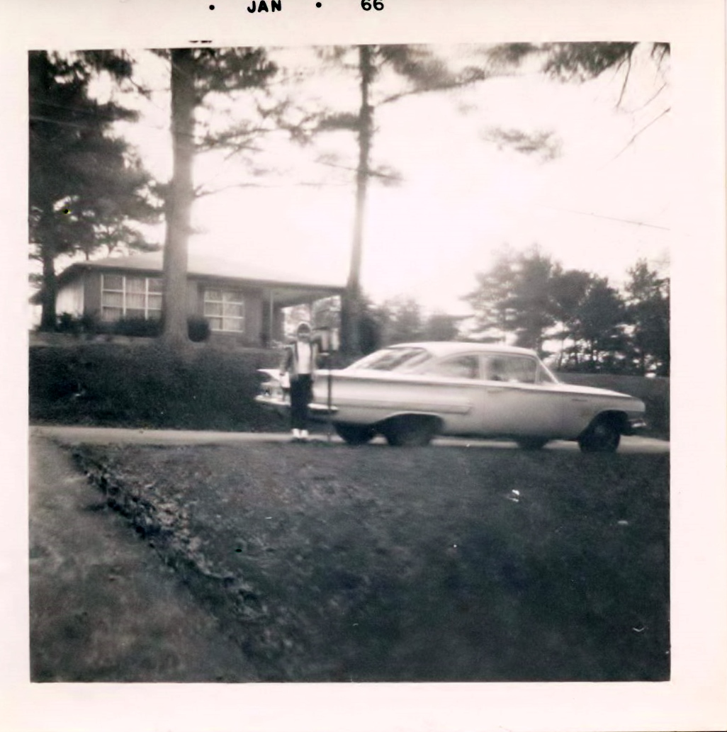 | Me (8 yrs) standing by the first car I ever remember my Daddy driving |