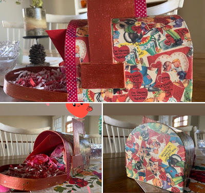 | made these Valentine Mailboxes and filled them with treats for my family |