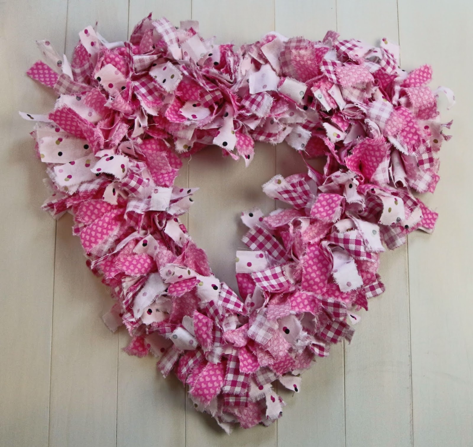 It is National Craft Month. And I love to create – to celebrate I thought this rag heart wreath would be a great project to share. This is an easy project that even the kids will love.