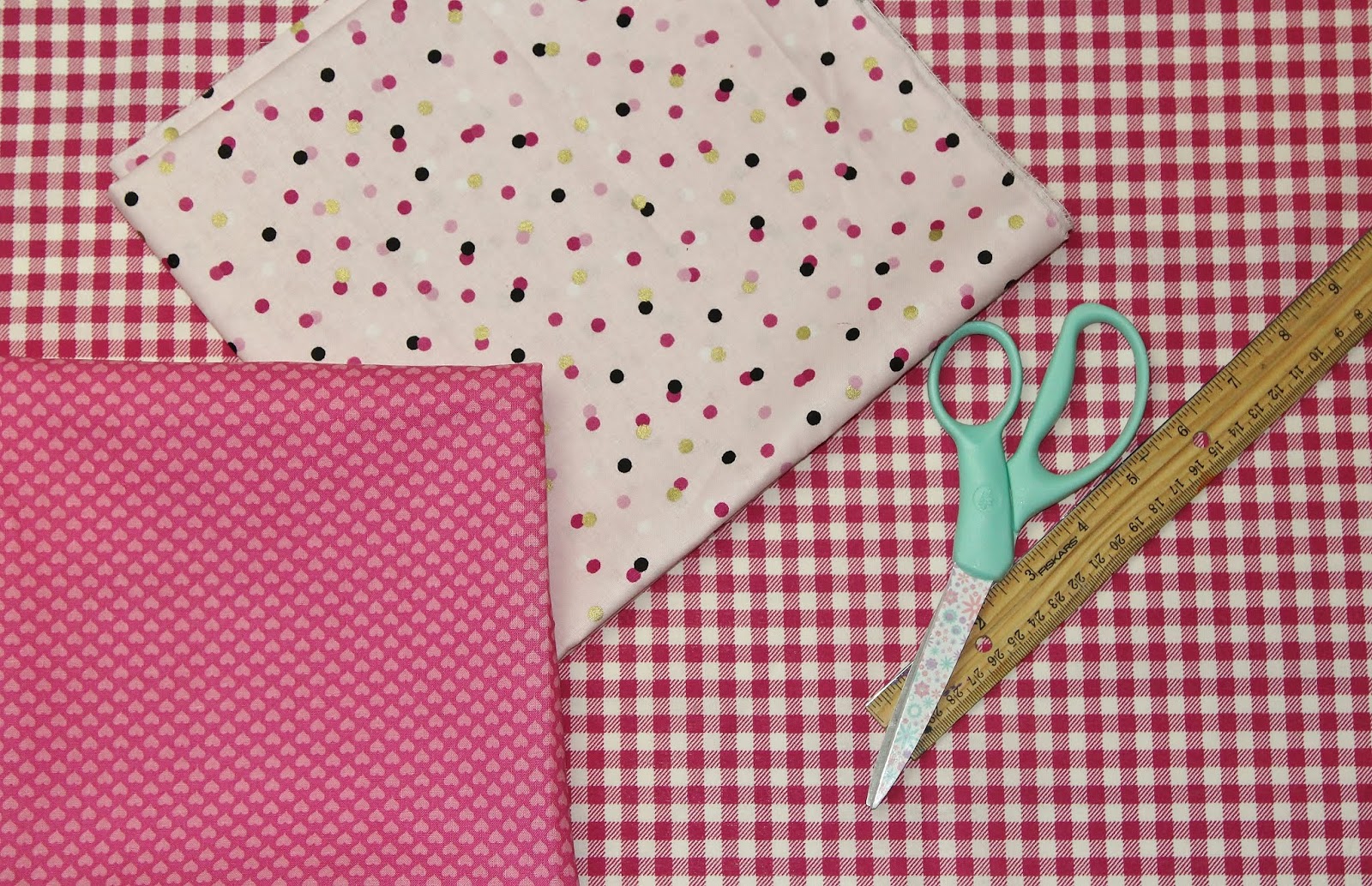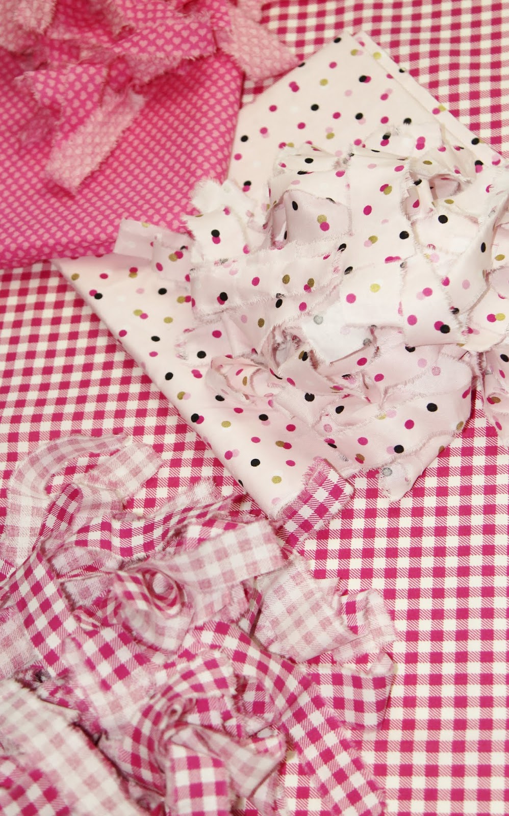 1. Spread your material out on the table. Measure and tear strips of fabric 1″ x 8″.